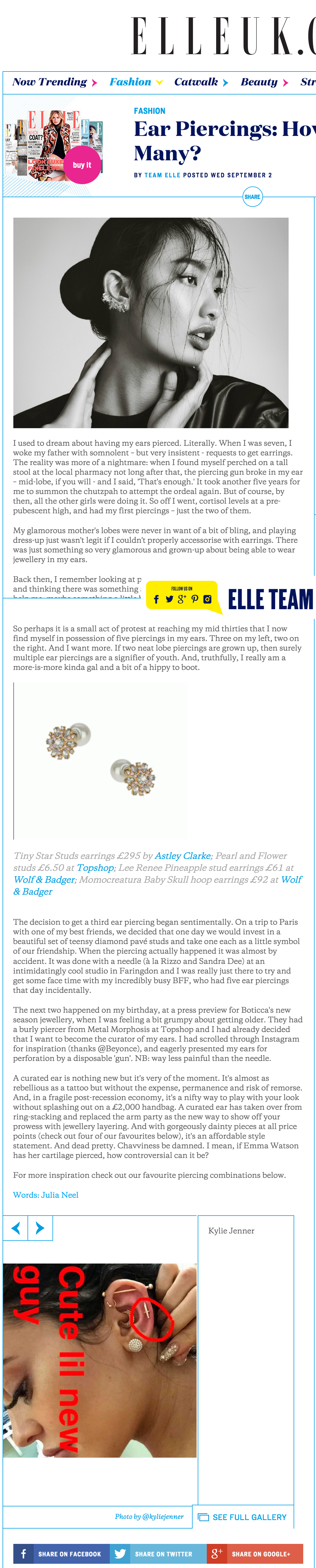 Trend: How Ear Piercings Became Fashion’s Answer To The Tattoo | ElleUK.com | August 2015